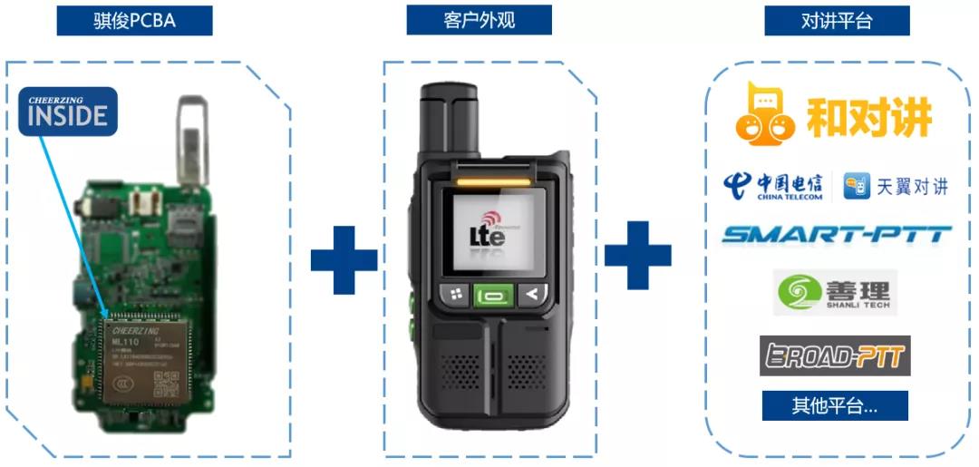 快速的产品适配:基于我司自研OpenPoC软件架构,可快速适配不同结构外观的公网对讲机,帮助客户进行快速旧机方案升级,或制作新机的Cat.1 PoC解决方案,快速进军不断扩大的Cat.1公网对讲市场。